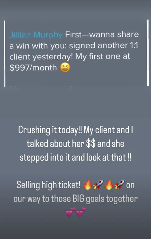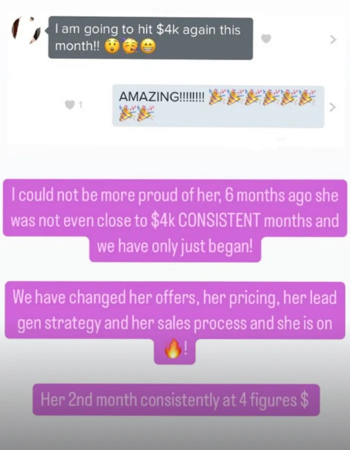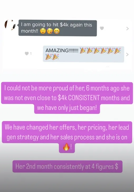 Most students see their first meaningful DM conversations within the first week of implementation. Sales typically follow within 2-4 weeks as you build those relationships. Remember, this isn't about overnight success, it's about building a sustainable system that generates consistent results month after month.